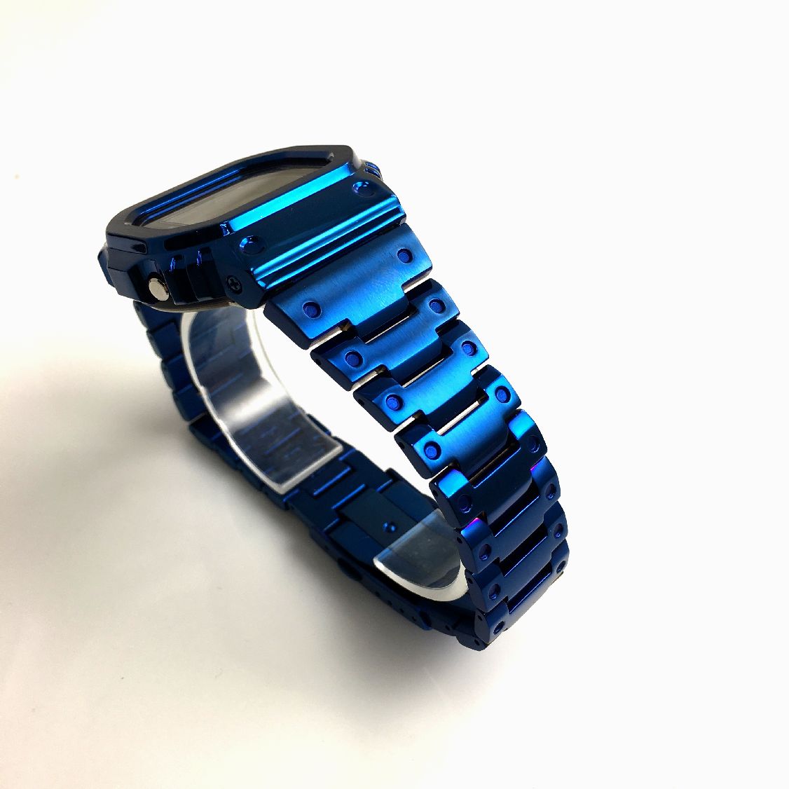 Casio G-Shock DW5600 Mod Blue PVD Steel Bezel Bracelet 5600 Full Custom Metal