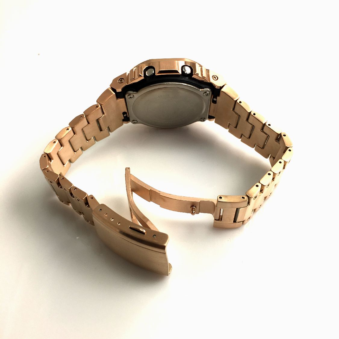 This is a modified DW5600E-1V watch with rose gold tone PVD plated METAL bezel and bracelet.