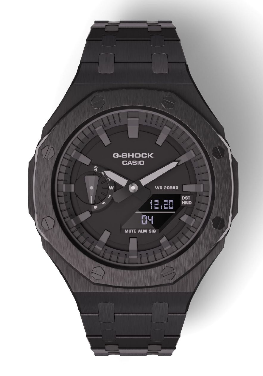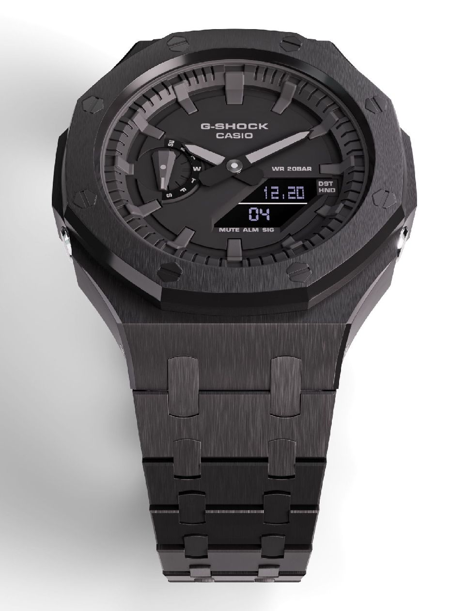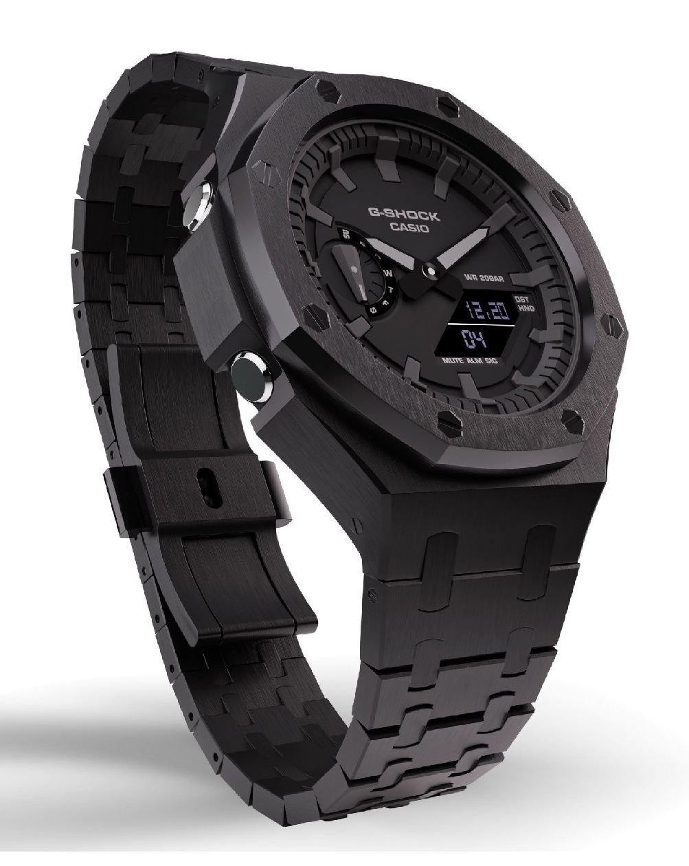 • Casioak Mod Royal Oak Casio G-Shock GA-2100 Black All Metal Steel Watch GA2100