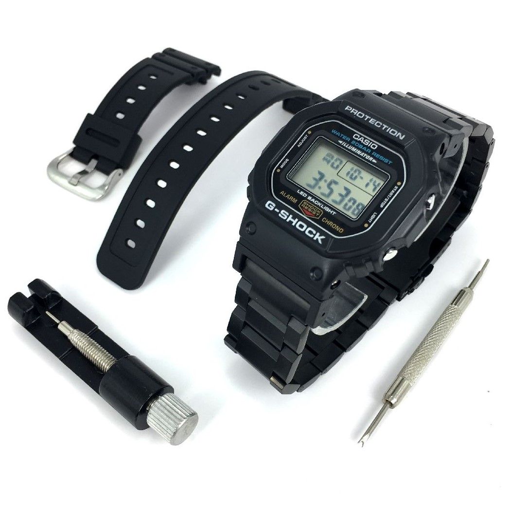 - This is a modified DW5600E-1V watch with Black PVD plated METAL bracelet.