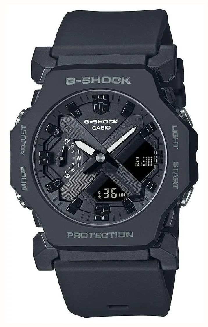The Casio G-Shock GA-2300-1A delivers a sleek and stealthy look in a compact form factor, perfect for those who want G-Shock toughness without the bulk. Featuring a matte black resin case, bold analog hands, and dual digital displays, this watch brings function and fashion together with a slim, modern edge. It includes all the signature G-Shock features — shock resistance, 200M water resistance, stopwatch, world time, and more — all packed into a lightweight, comfortable design that doesn’t compromise on strength.