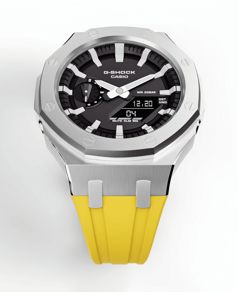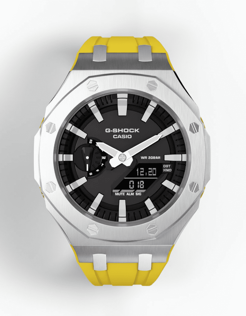 Casioak Mod Watch Casio G-Shock GA-2100 Metal Case Yellow Strap Modded GA2100-1A