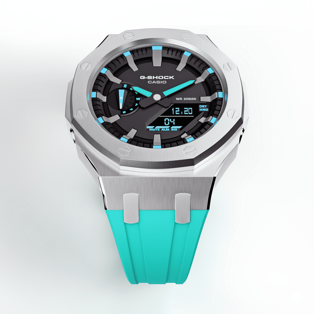 • Casioak Mod Metal Watch - Modded Casio G-Shock GA-2100 Turquoise Aqua Blue Strap