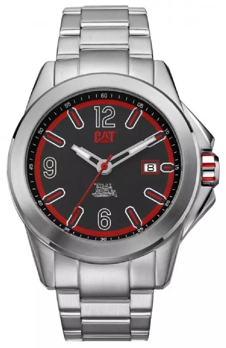 The Caterpillar CAT YU14111138 Twist Up features a sleek stainless steel case and bracelet with a bold black dial and red accents. Powered by a Quartz Miyota 2315 movement, it offers reliable timekeeping, a date display, and 100m water resistance in a polished 42.5 mm package.