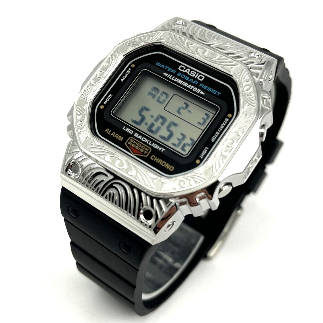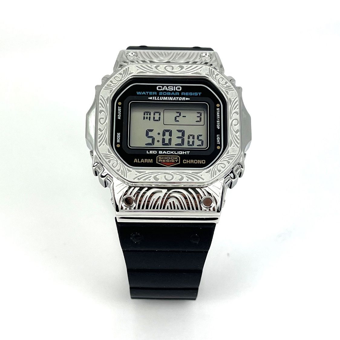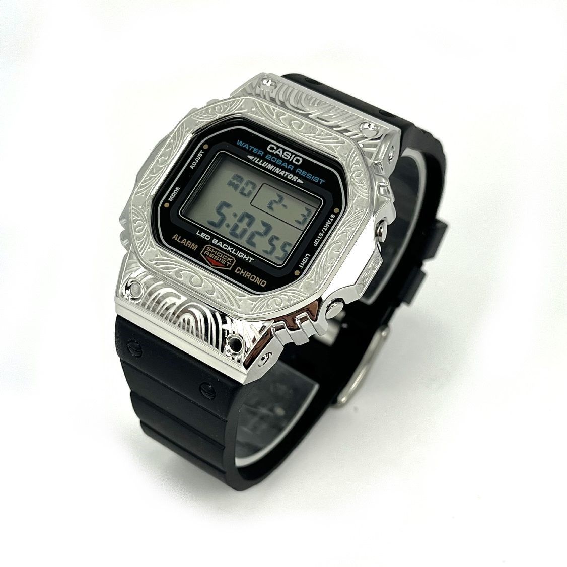 Casio G-Shock DW5600 Mod Custom Metal Patterned Steel Silver Bezel 5600