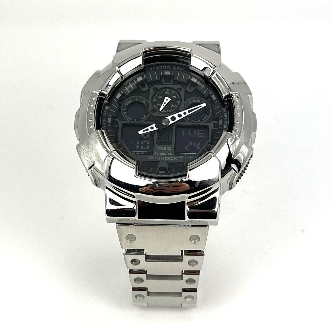 • Casio G-Shock GA100-1A1 Mod Full Custom Metal Case and Bracelet Silver GA-100