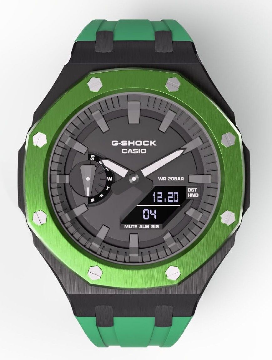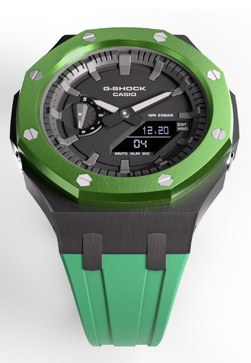 • Green Casioak Mod Custom Casio G-Shock GA-2100 Custom Metal Watch GA2100