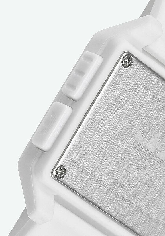 • White plated stainless steel case.