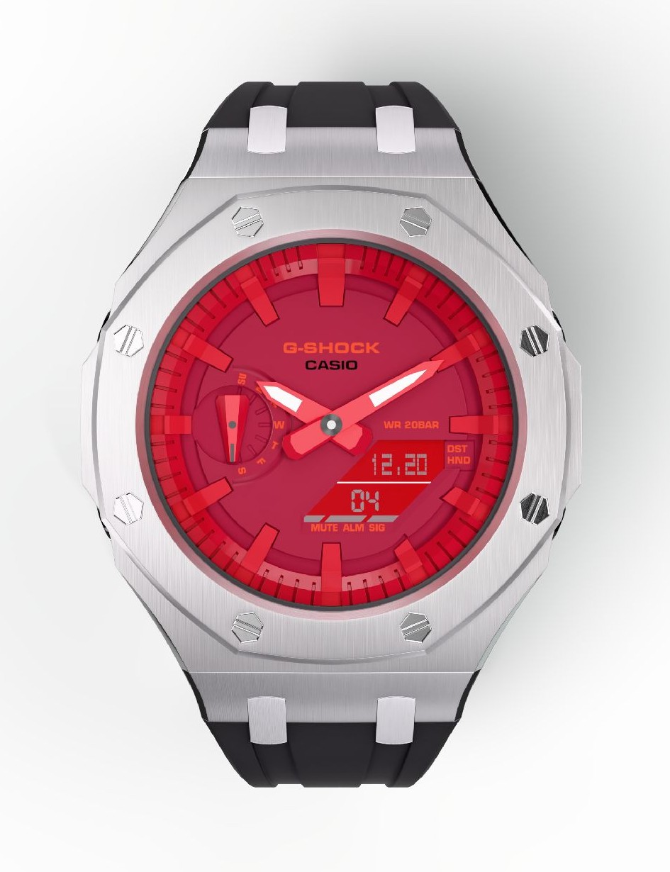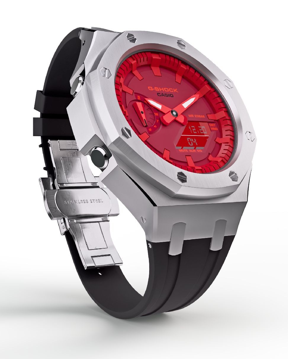 Casioak Mod Custom Watch Casio G-Shock GA-2100-4A Metal Case Red Dial Black Strap
