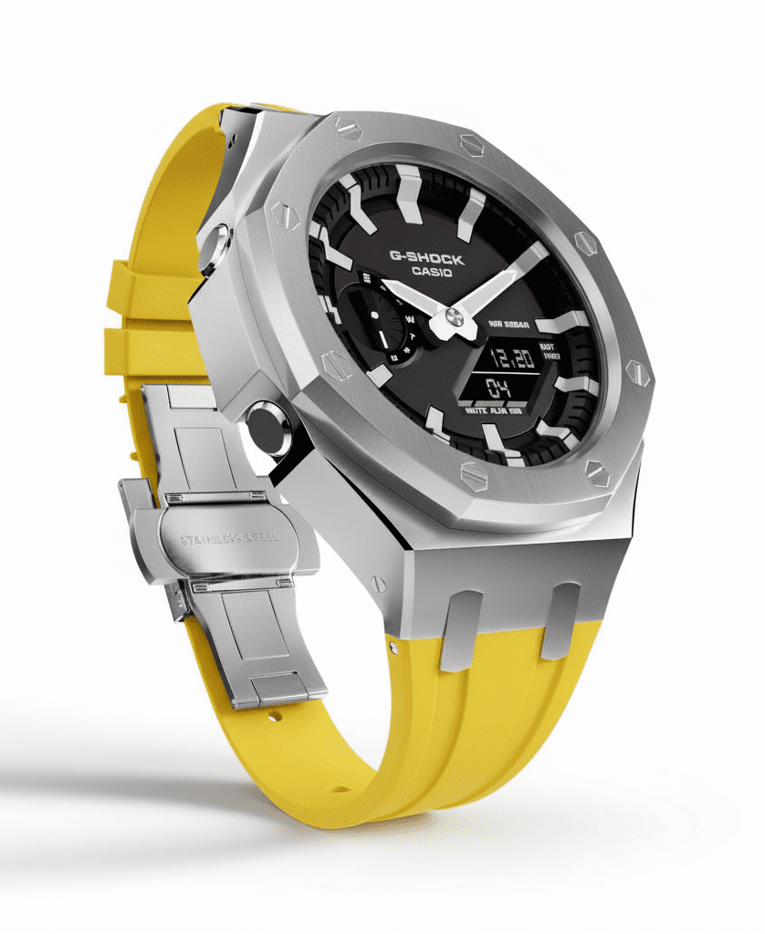 Casioak Mod Watch Casio G-Shock GA-2100 Metal Case Yellow Strap Modded GA2100-1A