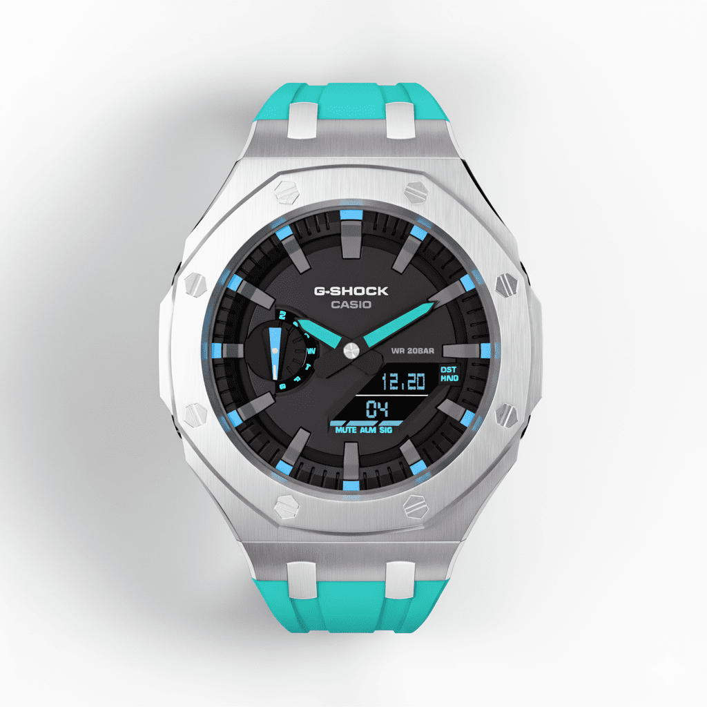 • Casioak Mod Metal Watch - Modded Casio G-Shock GA-2100 Turquoise Aqua Blue Strap