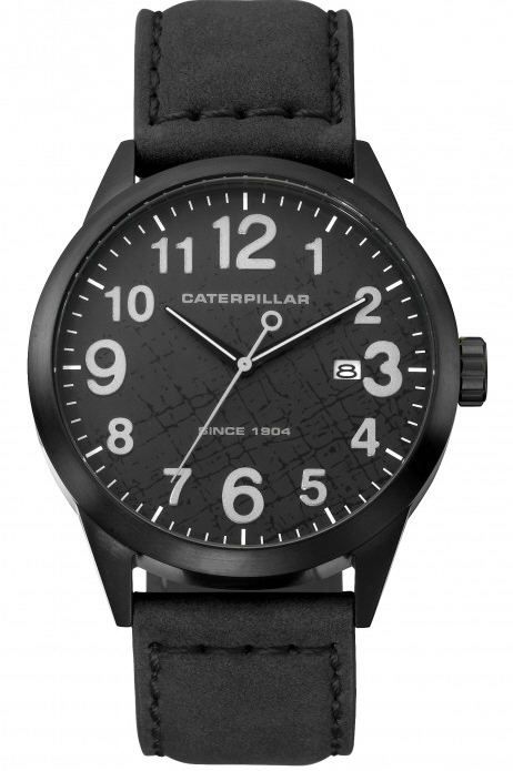 • Men's CAT Caterpillar All Black Leather Strap 43mm Watch EX16134111