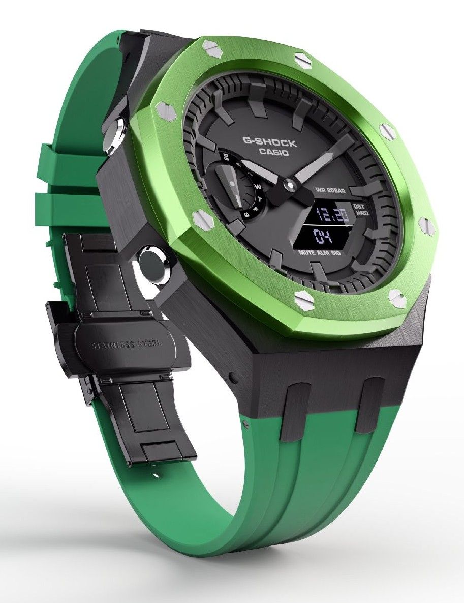 • Green Casioak Mod Custom Casio G-Shock GA-2100 Custom Metal Watch GA2100
